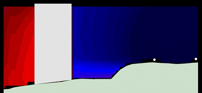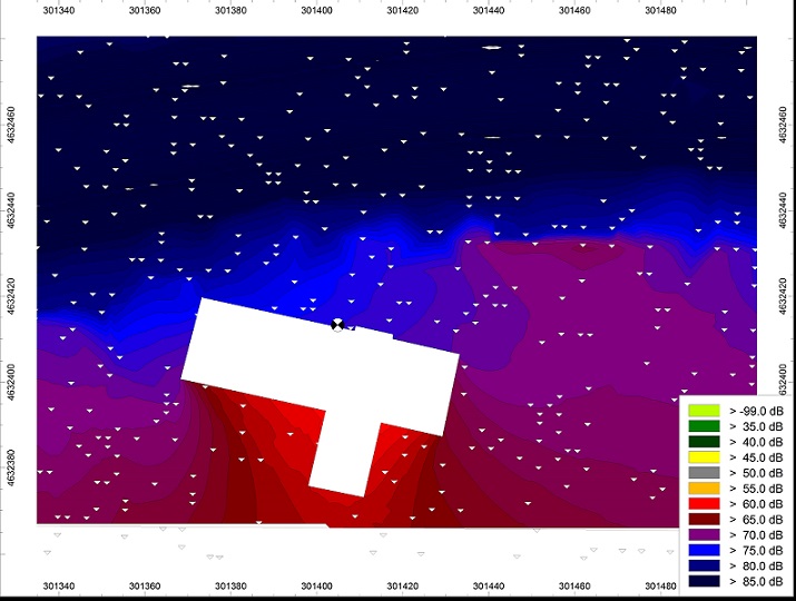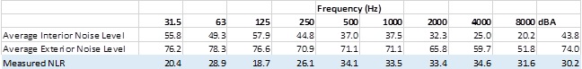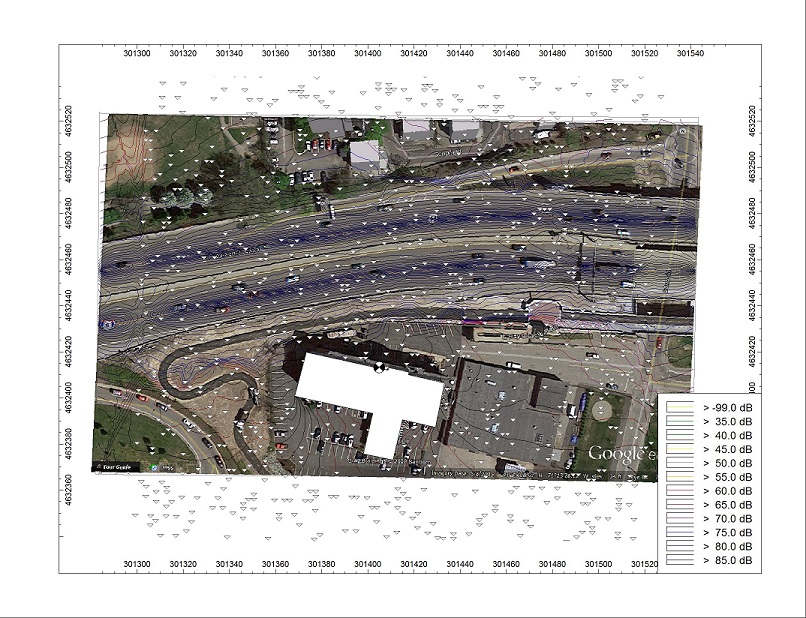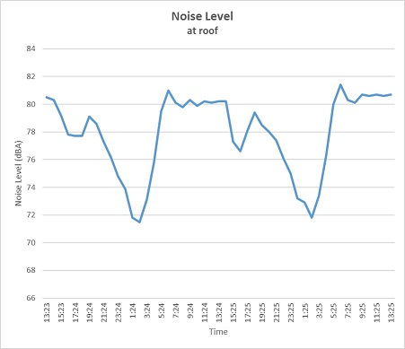 |  Introduction The Hilton Gardens Hotel in Providence, Rhode Island has the heavily trafficked Interstate 195 on one side and the Providence Harbor on the other side. The photo above is from the harbor vantage point. This in turn causes excessive interior noise on the highway side and acceptable interior noise on the harbor side. The aim of this study was to determine what sound insulation treatments would be required to achieve acceptable interior noise levels on the highway side of the building. To achieve this, the following steps were taken: 1. A DCC acoustical engineer conducted multiple days of continuous highway noise measurements by installing a noise monitor on the roof of the building. This data was used to determine the worst-case noise exposure. 2. An acoustic model of the site was developed to determine the variation of noise levels along the building façade, both laterally and vertically. This information is needed to determine if some floors or sections require more robust treatments than other areas. 3. Highway noise measurements were made just outside the window of a 2nd floor test unit and just inside the window of the same unit. This data was used to determine the existing Noise Level Reduction (NLR) provided by the existing windows/façade/unit ventilator. 4. The existing NLR was tested again by using a test loudspeaker to ensure both the consistency of the test noise source and overall loudness. 5. Based on the results of 1-4, acoustic modeling was performed to determine the types and amount of noise reduction that would be needed via sound insulation treatments. Highway Noise Measurements Figure 1 shows the results of continuous noise monitoring on the roof from 9-13-16 to 9-15-16. Noise levels range from 72 dBA in the early hours of the morning to a high of 81.4 dBA during the morning rush hour. The value of 81.4 dBA will be used as a baseline for the design of the sound insulation treatments.  Acoustic Model of the Site In order to address the potential variability of noise levels across the building façade, a 3D acoustical model was developed using CADNA- an internationally accepted environmental noise software application. Aerial photographs of the site as well as several thousand elevation points were input into the program. Figure 2 shows the graphical rendition of these inputs.  Finally, the overall octave band sound pressure levels obtained from the highway noise measurements were input into the program. The model was developed so that the calculated noise level at the roof position matched the reference noise level of 81 dBA at the edge of the roof. Figure 3 shows the noise contour results from the modeling. At ground level, the noise level ranges from 78 dBA to 72 dBA from west to east along the building façade. However, at the roof elevation, the range is 81 dBA to 78 dBA. This higher noise level is due to reduced shielding afforded by existing topography at lower elevations.  Figure 4. shows the building façade noise exposure from the profile perspective at the roof top noise measurement position. The noise level ranges from 81 dBA at the roof to 74 dBA at the ground level. As can be seen from the figure, the topography provides significant shielding for the lowest floors. The conclusion of the CADNA analysis is that while there is variation in noise levels along the façade vertically and laterally, the extent of the range of noise levels is not large enough to justify employing different sound insulation treatments on each floor- for example. In practice, installation of non-uniform treatments would be cumbersome and would likely outweigh any cost savings derived from that approach.  Existing Façade Window/Unit Ventilator Acoustic Testing DCC conducted two different methods of acoustic testing to determine the existing NLR of the wall, window, and unit ventilator of rooms facing the highway. The two different methods used were 1) using highway noise as the source and 2) using a pink noise source played back through a test loudspeaker. Both methods have pros and cons and produce slightly different results. For the highway noise measurements, an octave band sound analyzer was positioned just outside the window of a test room on the 2nd floor. Immediately after these measurements were taken, measurements were conducted just inside the window. Since traffic conditions between each measurement were not identical to each other, multiple pairs of measurements were made. Table 1 shows the average results of this highway noise test.  Because of the limitations of the highway noise test and possible influence of ambient sound sources within the test room, another test was conducted using high sound levels of a pink noise source played back through a test loudspeaker. Table 2 shows the results of this test.  The loudspeaker test revealed that a very noticeable amount of sound was coming into the room through the unit ventilator, but the surface area of the window is much larger and therefore both the window and ventilator are considered major acoustical “flanking paths” into the rooms. The amount of sound leaking into the room is a function of the Transmission Loss (TL) of the façade wall, window, and unit ventilator as well as the surface area of each. Analysis/Recommendations An acoustical model of the façade, window, and unit ventilator was developed and based on the NLR measurements, assumed construction of the wall, and window and ventilator details. The acoustical model results were compared with the measured NLR (averaged between the highway and pink noise tests), with reasonable agreement. Various “what if” scenarios can be analyzed by modifying the existing acoustical model with window and unit ventilator treatments. A treatment consisting of adding a ¼” laminated glass window to the existing window with a 6” sealed airspace between the two glass elements was analyzed. Based on the data collected, treating the window only does not ap