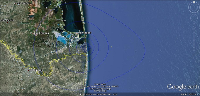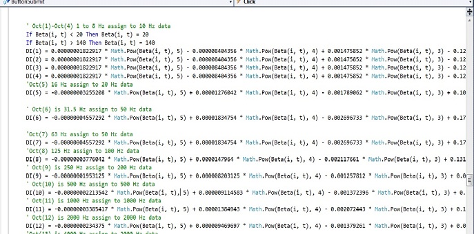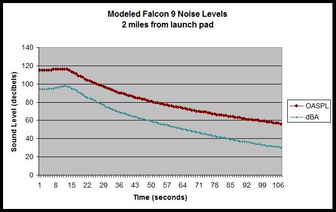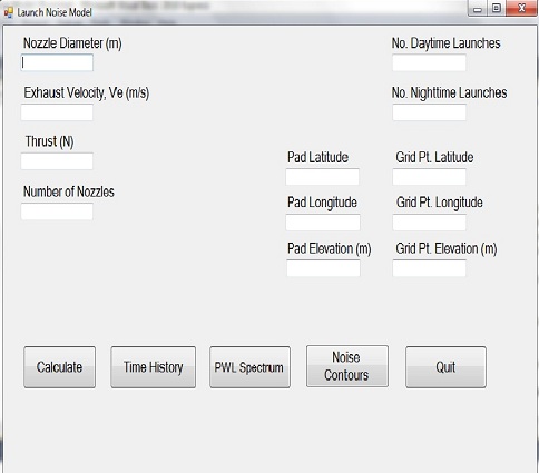 |  Introduction The Office of Commerical Space Transportation (AST), a branch of the Federal Aviation Administration oversees commercial space launch activity in the U.S. Commercial space launch facilities and sites are being located and permitted through the NEPA process in various locations in the U.S. Launch noise and sonic booms as a launch vehicle passes Mach 1 is increasingly a concern especially for launch sites located near populated areas. In the past, this was not necessarily an issue because the major launch sites (such as Cape Canaveral) were located adjacent to oceans and launch vehicle trajectories directed most of the noise and sonic booms over the ocean. To address the siting of new launch facilities, computational noise modeling tools are needed to calculate rocket noise levels for comparison with various noise impact thresholds. On behalf of AST/ICFI, David Coate developed the Launch Noise Model (LNM). The LNM is a Windows application that computes noise contours for a user defined latitude and longitude for a launch facility. The main user interface is shown in Figure 1.  Input and Output Input values for LNM include the launch pad latitude, longitude, and elevation. Rocket input parameters include nozzle diameter, number of nozzles, exhaust velocity, and thrust. A user can input individual receptor locations for detailed analysis. The program will also calculate cumulative noise metrics such as DNL on the basis of user specified number of daytime and nighttime launches. LNM generates numerous other noise contour metrics including CDNL, Maximum A-weighted (dBA Max), Overall Sound Pressure Level (OASPL, dB), and Sound Exposure Level (SEL). Grid files for these metrics are generated for a user-specified number of grid points in the format of latitude, longitude, dB. Grid files are then read into NMPlot. NMPlot is the standard noise contour plot program used by FHWA’s Traffic Noise Model (TNM) (for highway noise modeling), FAA’s Integrated Noise Model (INM) (for civil aircraft), and DOD’s NOISEMAP (for military aircraft). Finally, NMPlot files are converted to KML format for overlay in Google Earth. LNM reads a launch vehicle trajectory data file that includes rocket latitude, longitude, altitude, and velocity, for each second along the rocket trajectory. Figure 2 shows an example LNM noise contour output. This example is OASPL contours for SpaceX’s Falcon 9 Heavy launch vehicle for a proposed launch facility in Texas. In this example, the noise contours bulge towards the east, along the Falcon 9 launch trajectory in that direction.  LNM also computes time history graphs of noise level versus time at a user specified latitude and longitude. Figure 3 shows an example LNM time history graph. In addition, LNM can compute a graph of the rocket sound power level as a function of frequency.  LNM Algorithms LNM’s algorithms are based on the following well established methods: 1) “Acoustic Loads Generated by the Propulsion System” Ken Eldred, NASA, 1971 2) “Progress and Problems in Rocket Noise Prediction for Ground Facilities” L.C. Sutherland, AIAA 1993 Rocket noise is highly directive as a function of angle off-axis of the exhaust flow. Reference 1 provides directivity data as a function of Strouhal number and angle. Strouhal number, S, is a dimensionless value that allows direct comparison of rocket sound power level spectra. Where De= effective nozzle diameter (m) Ve= exhaust velocity (m/s) More recent data from the NASA Ares I project are incorporated into LNM. A sample fifth-order polynomial curve fit of the NASA directivity data, used in LNM, is shown in Figure 4.  Figure 4. Example curve fit of NASA Directivity Data Figure 5 shows a sample section of the .net framework code in LNM that performs the directivity calculations.  Depending on the exact rocket trajectory, the directivity of rocket sound can result in dramatically changed sound levels and spectra on the ground. For example, as the rocket pitches over in order to reach its proper angle of orbital penetration, the rocket’s orientation to the ground may be much different than its orientation to the ground immediately after launch. As the rocket increases in velocity, the peak frequency Fp (usually less than 60 Hz) shifts downwards due to doppler shift. That observed frequency, Fo, is Where V = rocket velocity (m/s) Theta= angle of observer off axis of exhaust flow (radians) LNM incorporates the atmospheric absorption coefficients from ISO 9613 Part 1 “Calculation of the Absorption of Sound by the Atmosphere” with a 15 dB attenuation limit, as specified by the standard. LNM computes rocket-generated sound pressure levels, in octave bands, for every second along the rocket’s trajectory at hundreds (or perhaps thousands- if selected by the user) of grid points on the ground. As discussed previously, noise contours are then generated for a variety of noise metrics. Figure 6 shows the results of these effects over time in 10 second slices of time during the Falcon 9 launch trajectory towards the east of Padre Island, Texas.  |