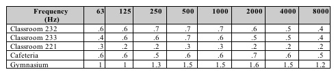 Table 1. Measured Reverberation Time (RT60 in seconds)