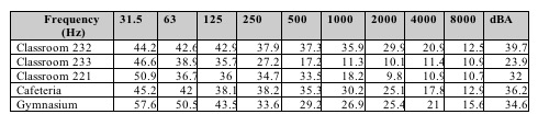 to be at or less than 35 dBA.  As shown in , Classroom 233, 221, and the