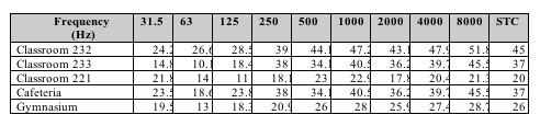 As can be seen from this table, the only room which meets the STC requirement is classroom 232.